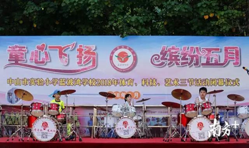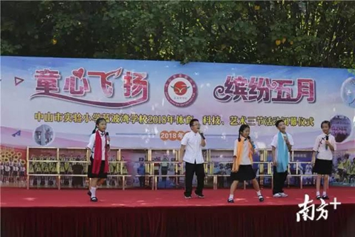 5月31日上午,中山市實驗小學藍波灣學校2018年體育、科技、藝術(shù)三節(jié)活動閉幕儀式舉行。現(xiàn)場,全校1300多名學生帶來了十三個節(jié)目表演。在這里,孩子們個個都是可愛的“小演員”。