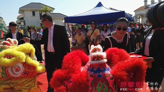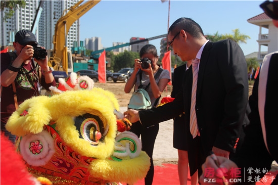 上午11:30分進入本次奠基儀式最精彩的環(huán)節(jié)點睛儀式,華策集團董事局副主席楊智雄以及行政總監(jiān)趙日云為舞獅點睛。伴隨著熱烈的禮炮聲,舞龍舞獅的表演,華策集團董事局成員和到場嘉賓共同啟動了培土奠基儀式,氣氛達到了高潮,華策·帝景灣正式動工。