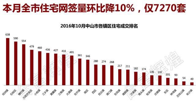 根據合富輝煌(中國)中山公司市研部數據監測:2016年9月全市住宅成交7270套,環比9月下降10%。按照7成的住宅占比估算,10月份中山商品房成交也破萬套。