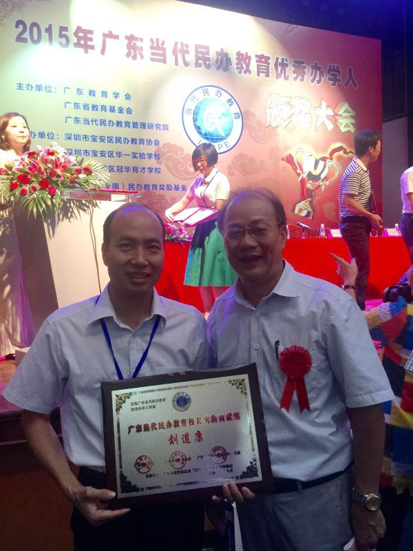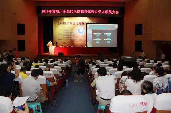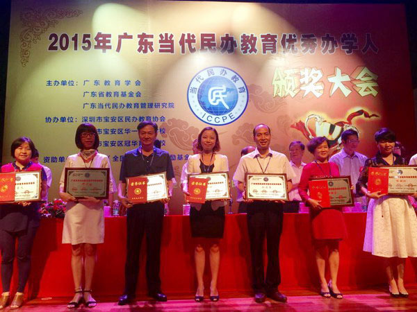 首屆“廣東當代民辦教育優秀辦學人”頒獎大會于2015年9月18日上午在深圳市寶安區群眾文化藝術館隆重舉行。本次活動由廣東教育學會、廣東當代民辦教育管理研究院、廣東省教育基金會共同舉辦,參加大會的還有此次獲獎的優秀辦學人以及全省各地的其他民辦學校舉辦人和校長約250人。