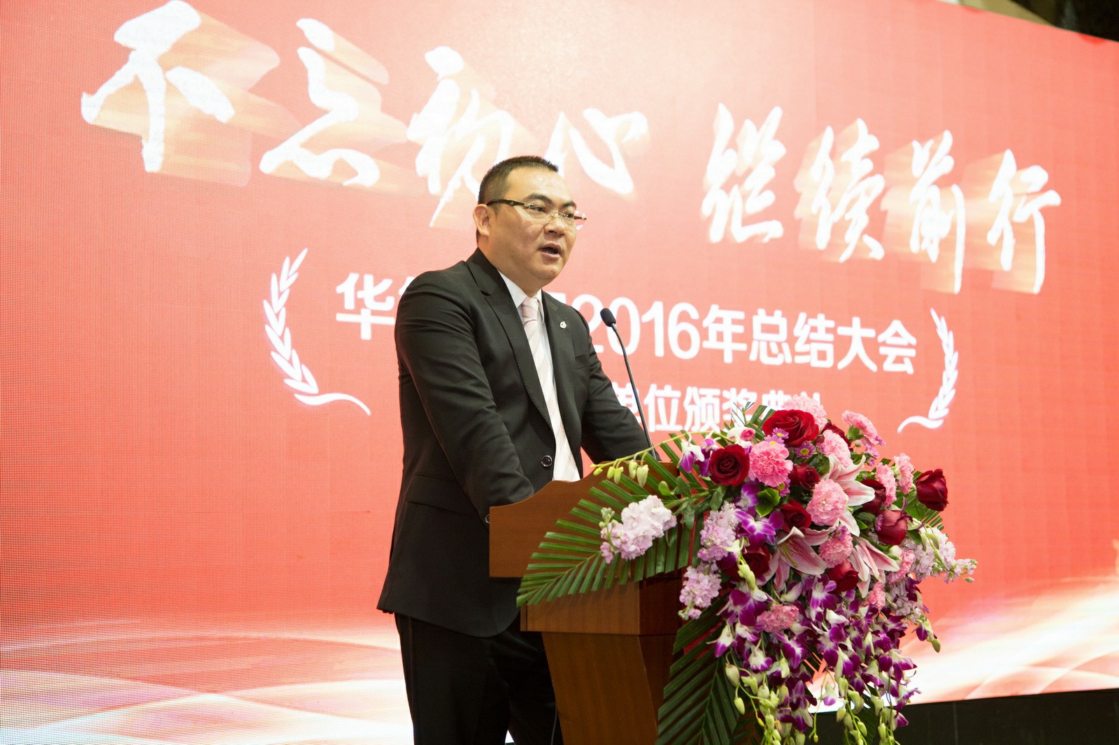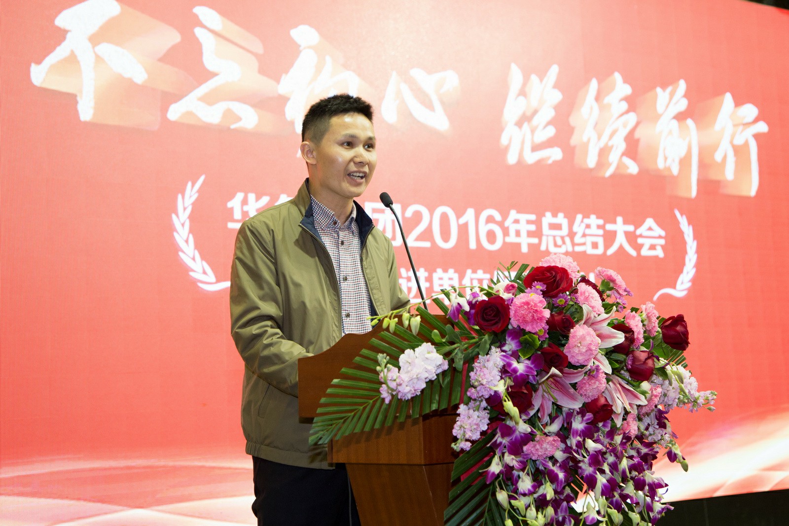 在聽取了地產(chǎn)科技板塊的工作報告和新一年工作安排之后,集團董事局主席楊峰發(fā)表了重要講話。他說,華策成立23年來,他首次為年度工作總結(jié)大會題字——“不忘初心,繼續(xù)前行”,他十分認(rèn)可這句話。他說,員工的初心,就是老板的責(zé)任。老板初心的實現(xiàn)離不開廣大華策人的同心協(xié)力,離不開廣大華策人對老板工作的支持。華策集團現(xiàn)有的機制乃至薪酬可能不是最好的,但華策人在過去一年做了很多事,無論是地產(chǎn)、高科技還是金融板塊,大家為華策集團創(chuàng)造了驕人的成績。沒有華策人的努力成就不了今天的華策集團,成就不了楊峰的初心。他只能通過華策每年的進步、不斷完善的集團機制回報廣大華策人。2016年的優(yōu)秀員工肯定不只是評選出的這幾十個人,集團的機制是為了更好的管理而設(shè)定的,只有相對的公平,不能做到絕對的公平。希望廣大華策人能夠繼續(xù)支持老板,他也不斷致力于完善集團機制,將華策集團打造成為華策人初心實現(xiàn)的平臺。第二,關(guān)于2017年的工作重點,楊峰主席總結(jié)了8句話。1.政通令達,對政府的新政策要了解,對集團董事局的決策要堅決貫徹;2.強將精兵,強將指的是我們的高層,希望我們的高層敬崗愛崗做好傳幫帶,帶領(lǐng)好我們的員工,因為強將手下無弱兵;3.形胖財健,集團大了,平臺大了,融資規(guī)模和手段更要提升;4.穩(wěn)珠強深,珠海是華策集團的根基,我們要深耕珠海,強大深圳;5.拓展穗惠,堅決貫徹董事局決策拓展廣州、惠州;6.金融輔進,融資是華策的優(yōu)勢,我們要繼續(xù)發(fā)揚這個優(yōu)勢;7.地產(chǎn)抓進度,雙限當(dāng)前,我們要把握機會,以最大的決心抓進度,把房子建好,有多少建多少,把房子建好了再等待機會;8.科技嚴(yán)時令,科研有了結(jié)果,我們要把成果轉(zhuǎn)化到商業(yè)中去,科技是時代產(chǎn)物,錯了時令就變成“古董”。