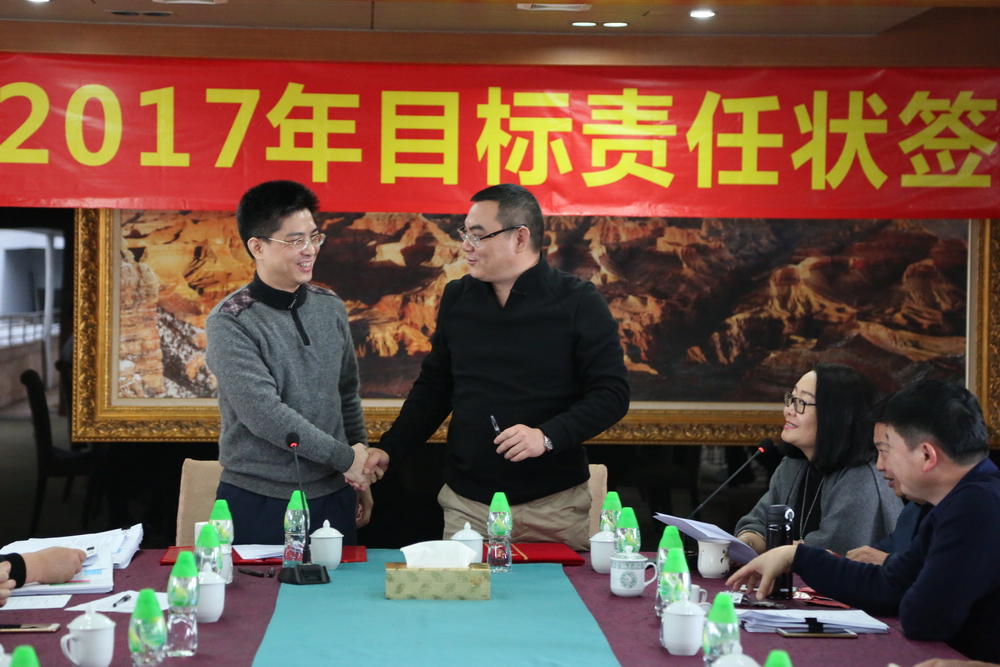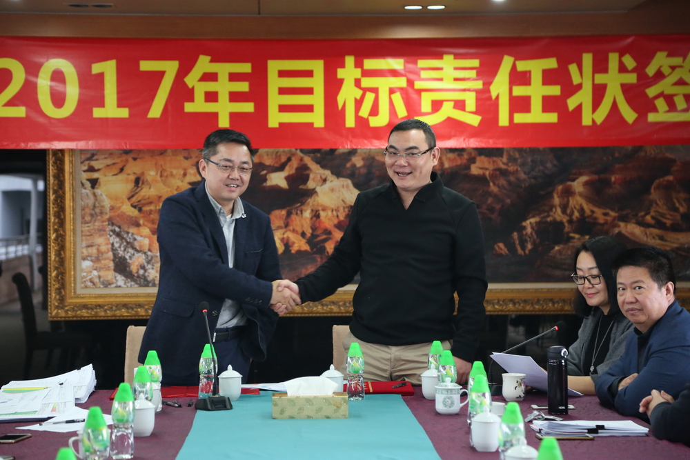 2017年3月10日下午,華策集團(tuán)2017年目標(biāo)責(zé)任狀簽約儀式在華策大廈14樓會議室順利舉行。集團(tuán)常務(wù)副主席楊智雄與26個職能部門負(fù)責(zé)人、各分公司負(fù)責(zé)人現(xiàn)場簽訂了《2017年度經(jīng)營管理目標(biāo)責(zé)任書》,明確了2017年年工作的方向和目標(biāo)。次日下午,集團(tuán)董事局主席楊峰與董事局全體成員在尋知軒簽訂了目標(biāo)責(zé)任狀。