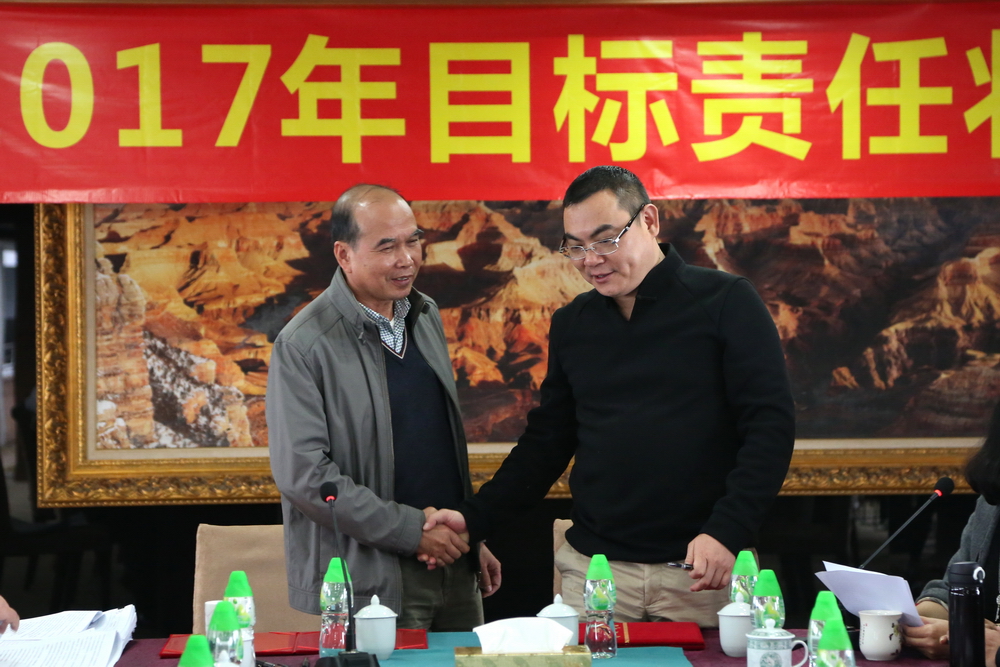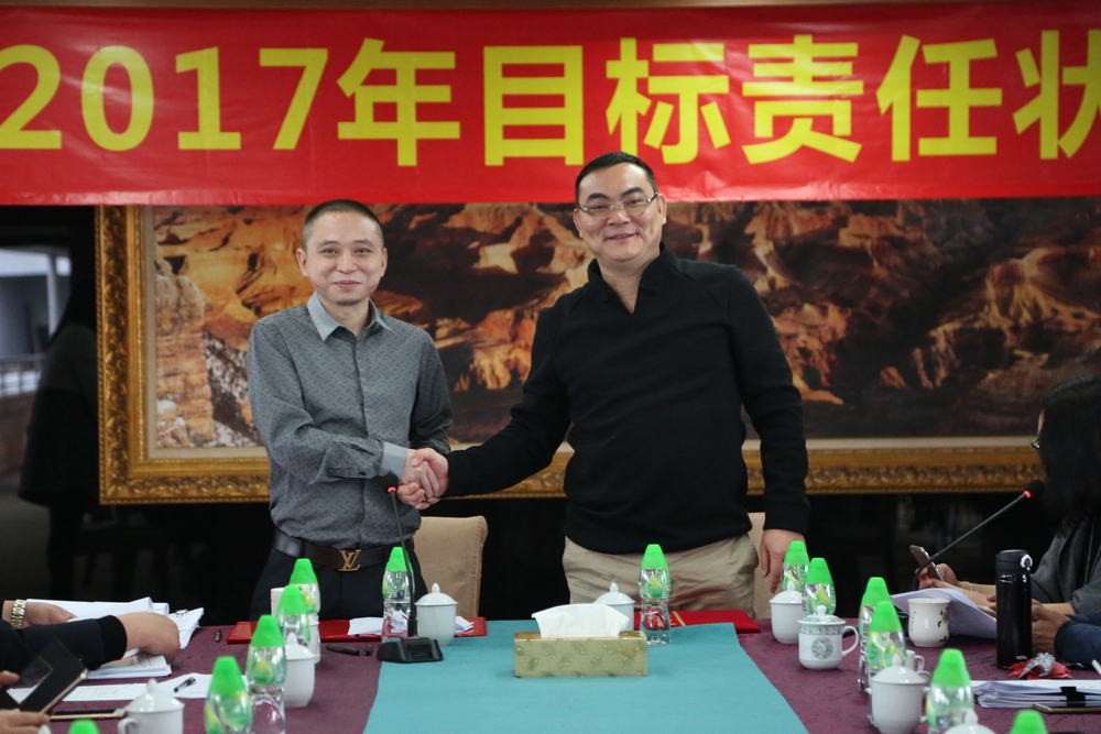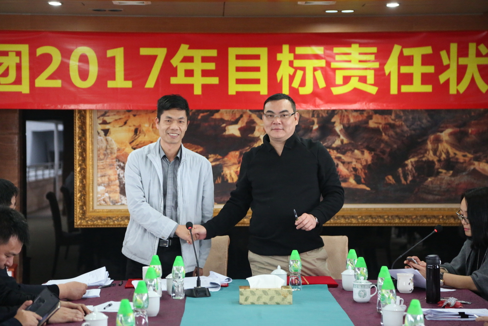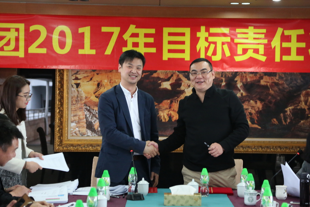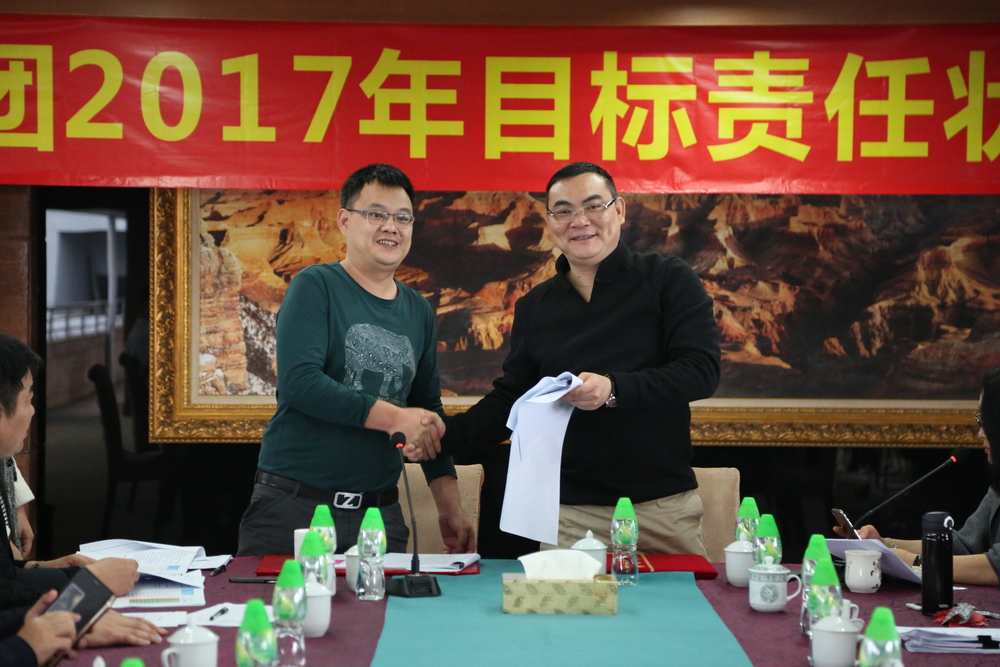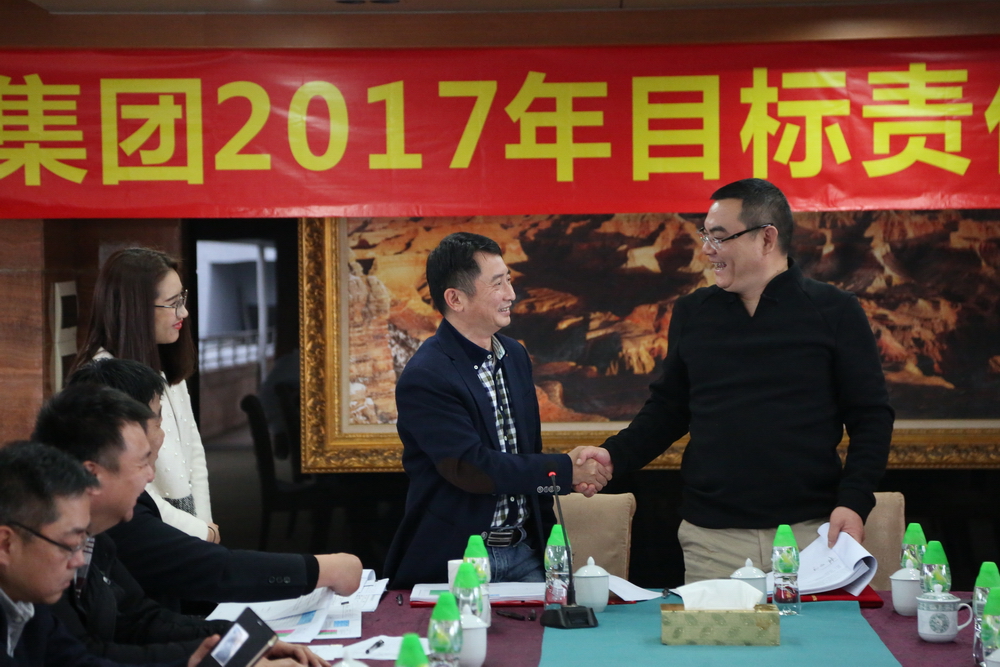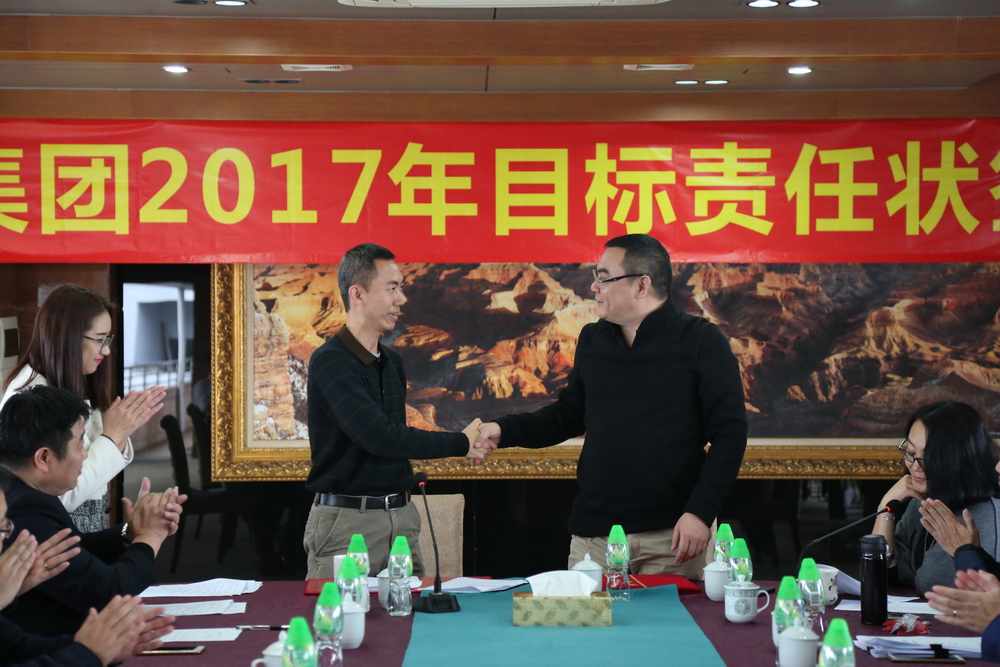 簽約完畢后,總裁余道群強(qiáng)調(diào),2017年市場壞境比較去年更加惡劣,每一個華策人要從集團(tuán)的生存和發(fā)展角度思考問題,不要奢望市場給我們“開小灶”。完成目標(biāo)責(zé)任狀有難度,但也是可實(shí)現(xiàn)的,每位負(fù)責(zé)人及各位董事都有考核壓力。希望大家充分理解,不要盲目放大困難,辦法總比困難多,只要把潛力發(fā)揮出來,是可以實(shí)現(xiàn)40億元的銷售目標(biāo)。我們要把壓力和動力層層傳遞給每個員工,共同分擔(dān),抱成一團(tuán),眾志成城,擼起袖子加油干!