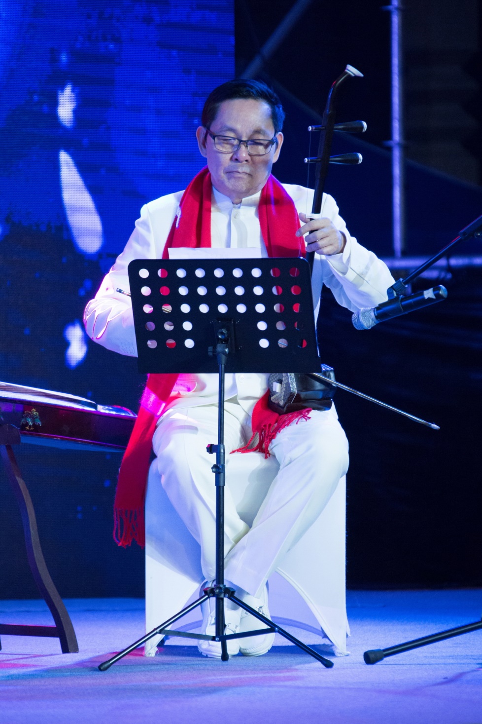 楊峰主席拉二胡為《華策人之戀》伴奏