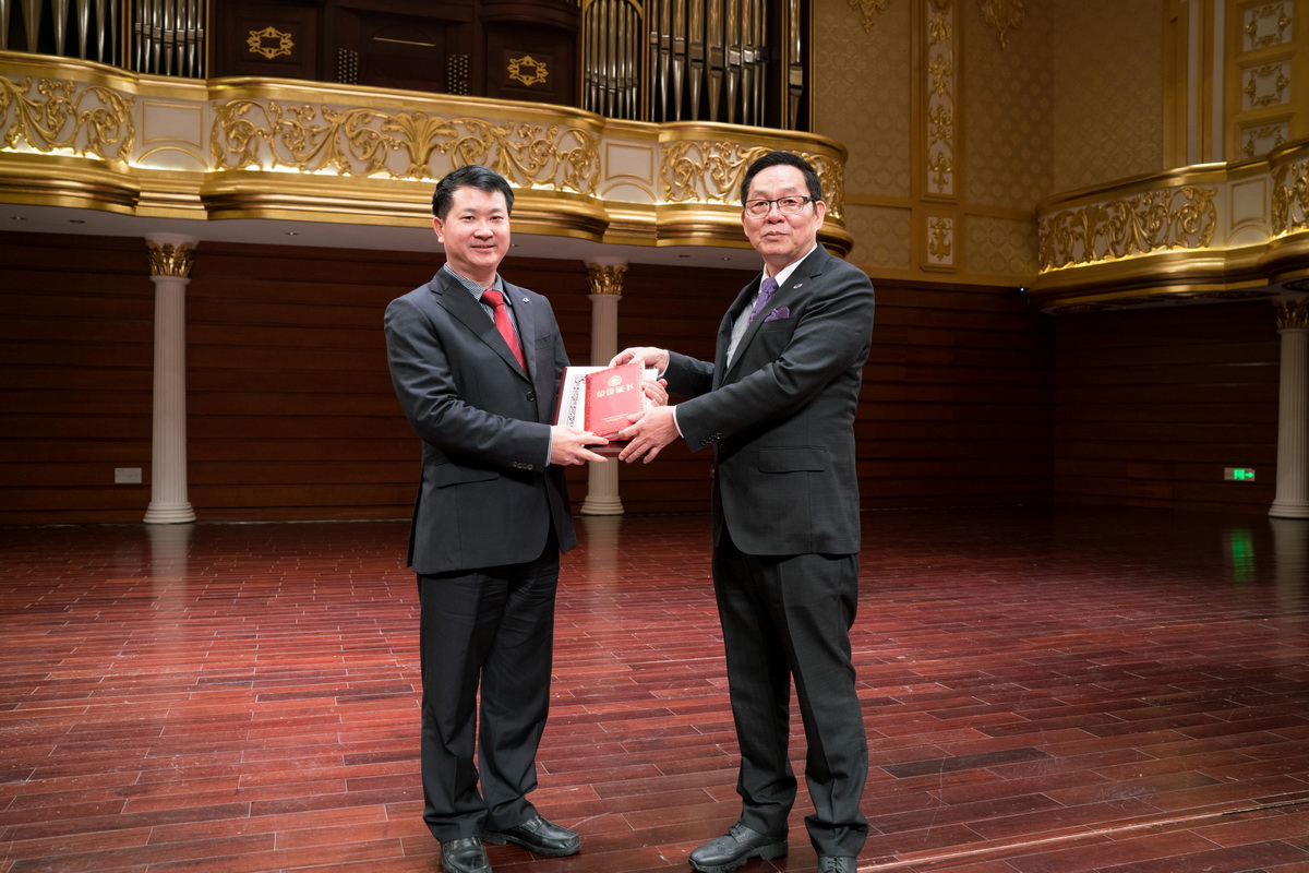 集團(tuán)董事局常務(wù)副主席楊智雄、集團(tuán)董事局總裁余道群為2017年優(yōu)秀員工一等獎(jiǎng)?lì)C獎(jiǎng)