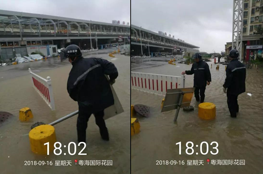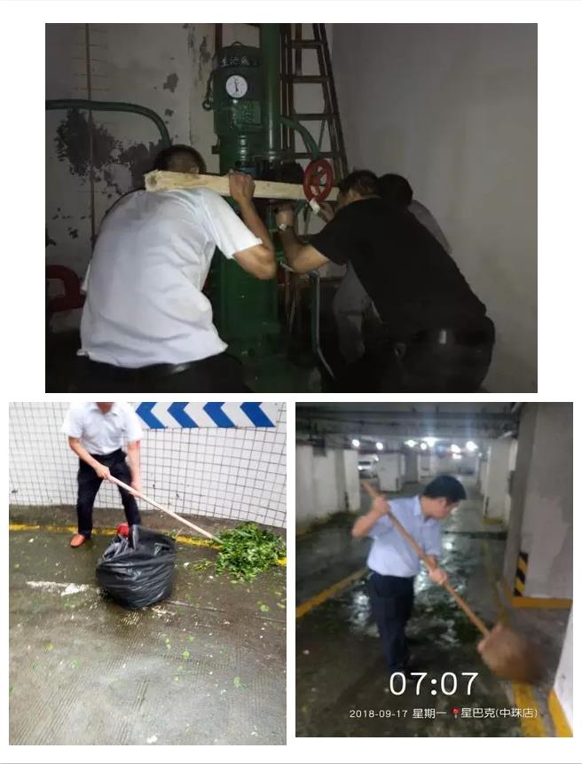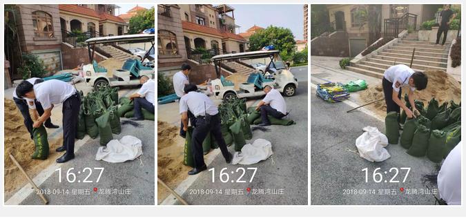 為業主服務,與時間賽跑,同風雨抗爭。9月16日,2018年地表最強臺風“山竹”來襲!物業公司的工作人員和保安全部在崗,南灣國際小區除了開辟兩條電話熱線隨時等候業主的求助召喚,更不顧風雨主動排查險情,主管人員帶隊巡查地下車庫排水系統,確保80臺水泵工作正常。