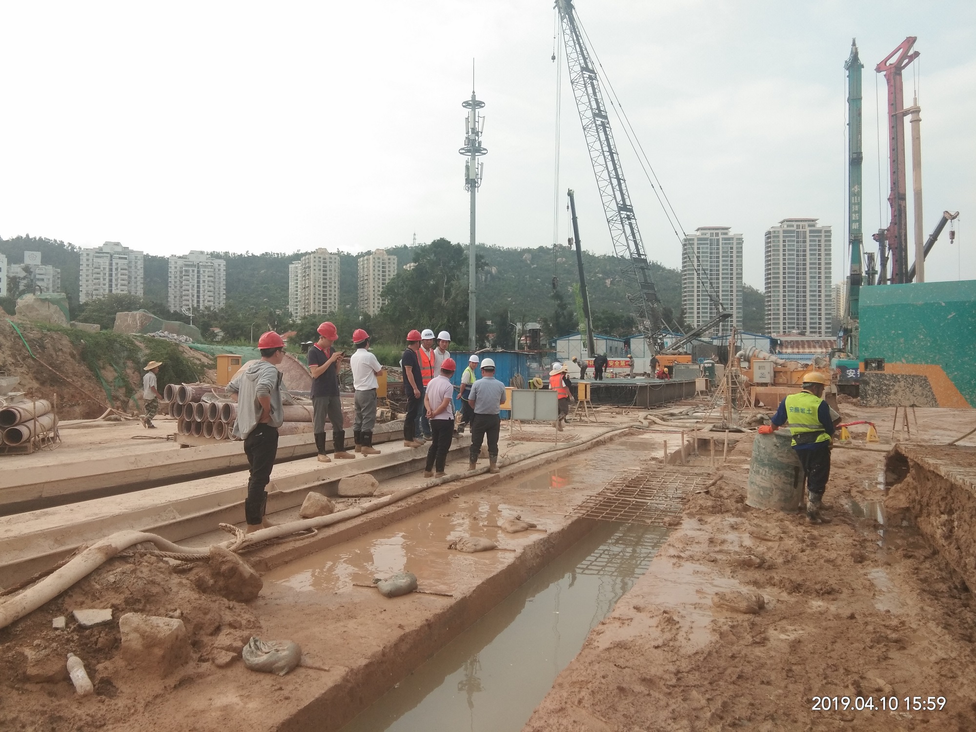 華策·海韻星灣項(xiàng)目地下連續(xù)墻鋼筋籠吊裝現(xiàn)場(chǎng)