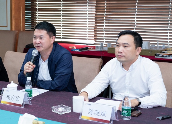 華策集團董事財務總監楊家瓊(左)在交流會上發言