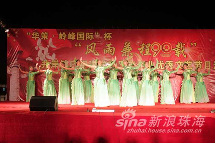 7月11日晚,由華策集團獨家冠名贊助的“風雨兼程90載”——井岸鎮“華策嶺峰國際杯”慶祝建黨90周年企業優秀文藝節目匯演在斗門區新青科技工業園文華體育廣場隆重上演。精彩絕倫、花樣繁多的節目,吸引了數千名市民觀看,斗門區井岸鎮相關部門及華策集團領導等眾多嘉賓出席了晚會現場,與市民共賀建黨90周年,場面氣氛熱烈,讓炎炎夏日更加激情四射。