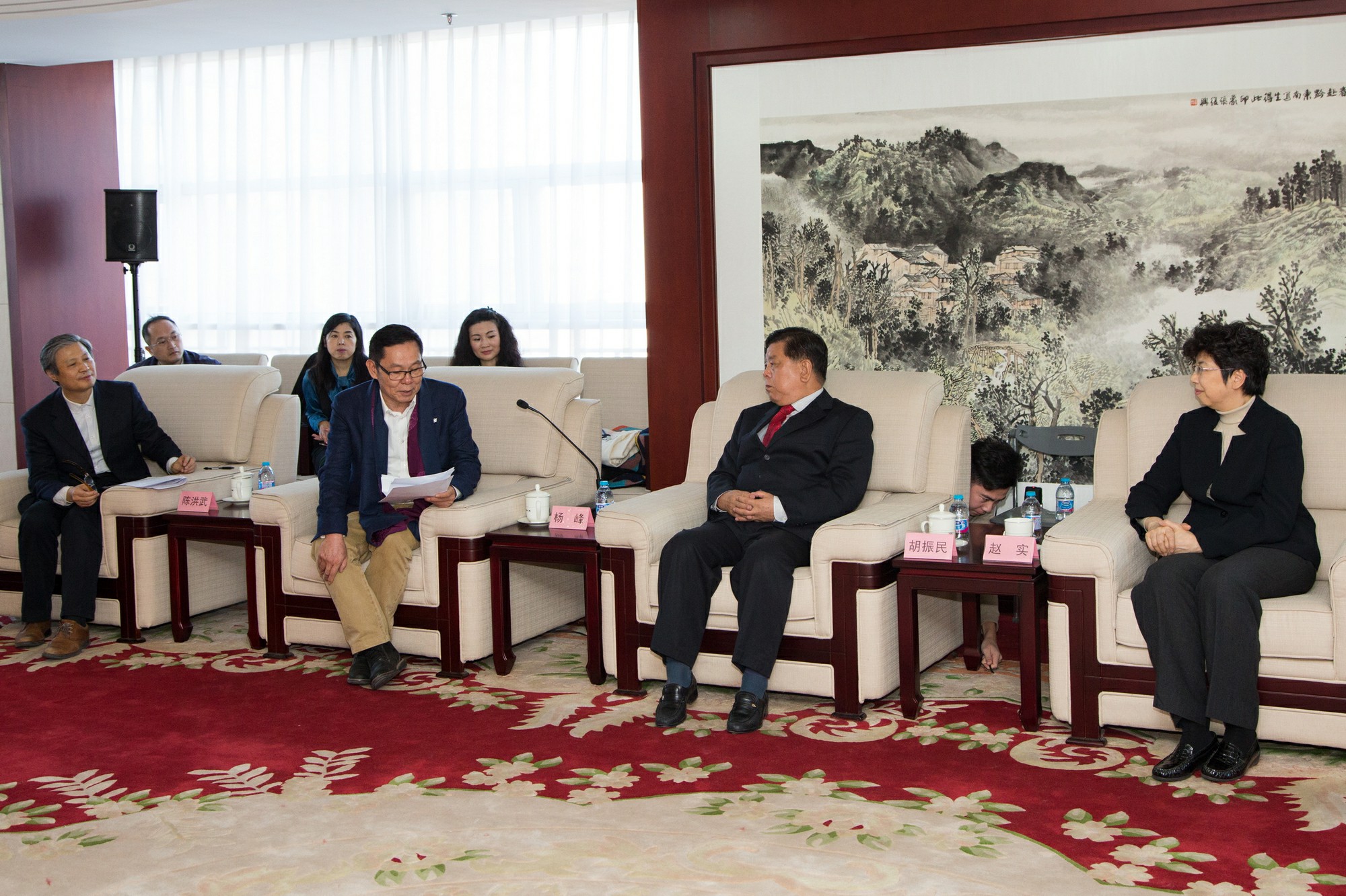 圖為捐贈現場,楊峰主席與嘉賓們展開親切交流