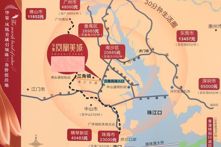 項目位于三角車站旁,已經開通公交線路為208、302、K02公交,項目位于京珠高速三角出口旁,是三角接駁廣州南沙、中山城區的“橋頭堡”,20分鐘抵達廣州,30分鐘抵達中山主城區,50分鐘抵達珠海澳門。